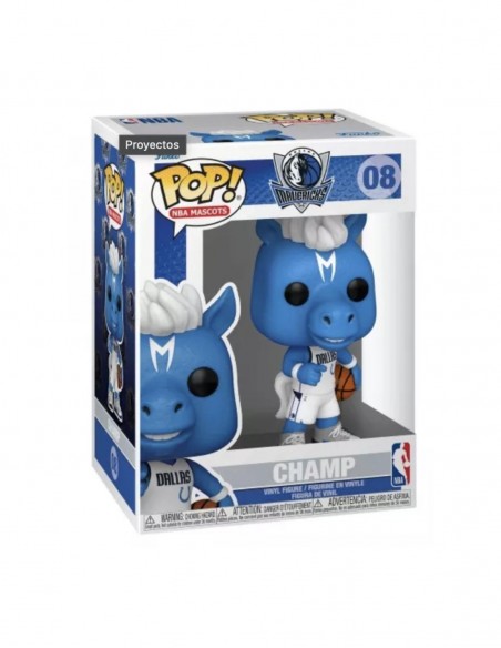 Figura de vinil d’uns 10 cm, amb Champ el cavall amb l’uniforme dels Mavericks i una pilota. Llicència NBA.