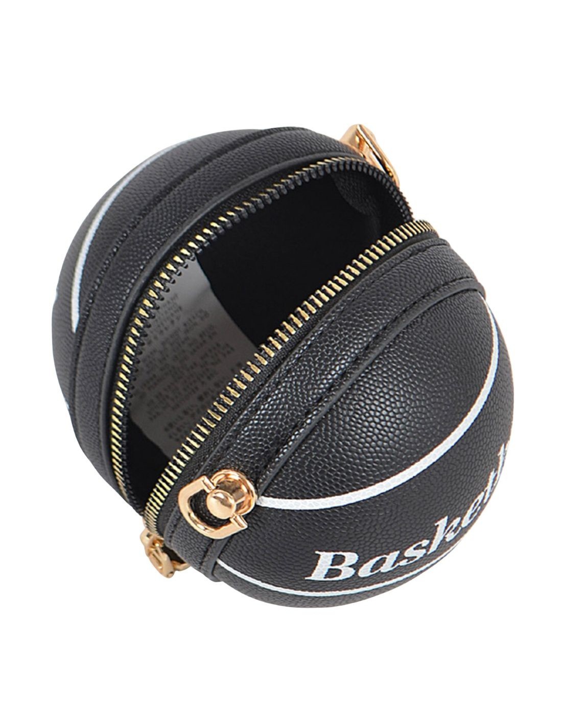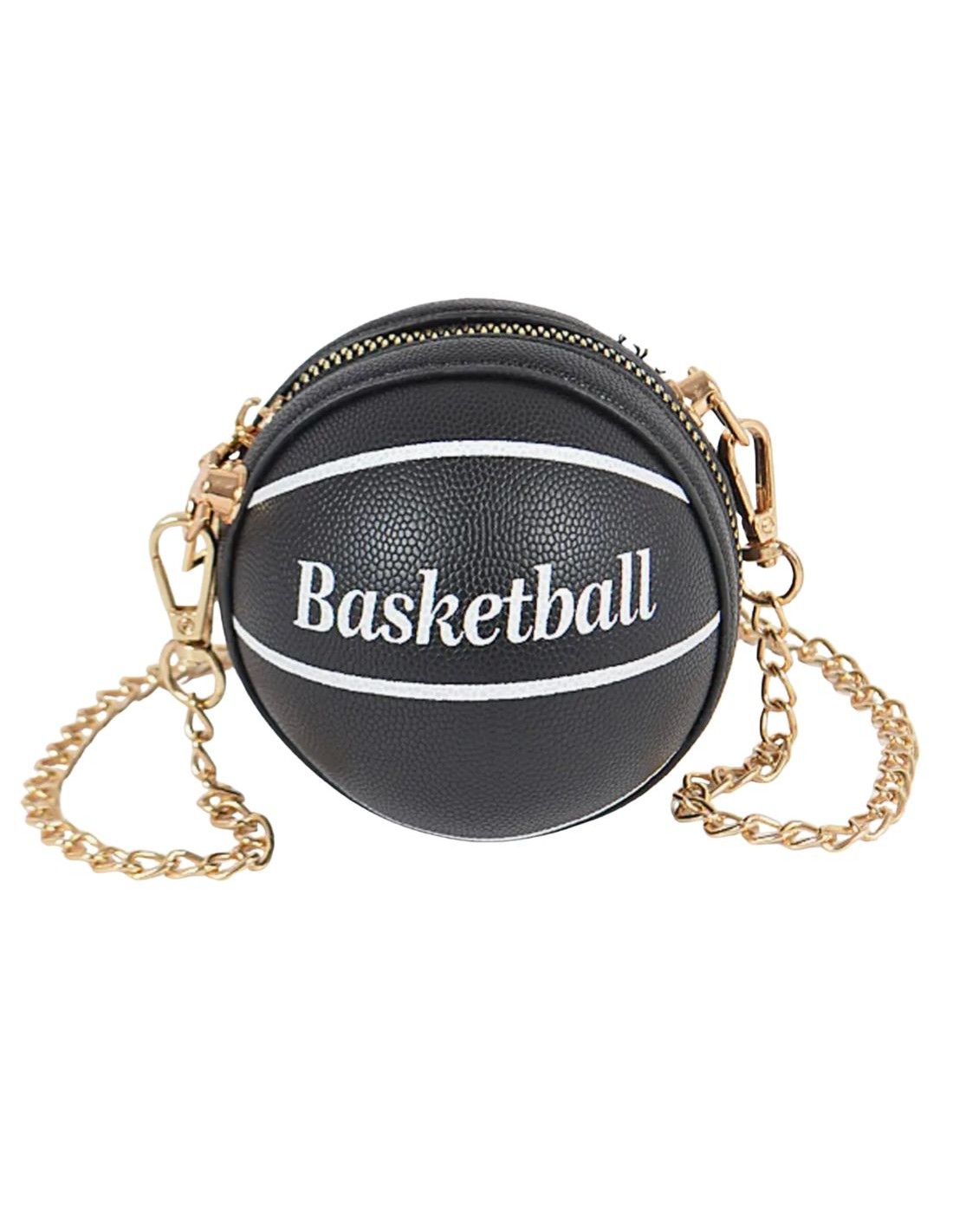 Compact accessory made of polyurethane and metal, in the shape of a basketball. Perfect for creative and bold looks.