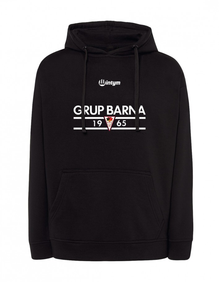 Hoodie with a kangaroo pocket. Its composition is 65% polyester and 35% cotton.