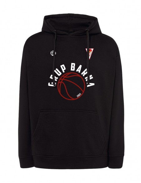 Sudadera unisex confeccionada con tejido de pelfa perchada en el interior. Tiene un bolsillo canguro en el centro. La capucha está forrada y tiene un cordón para ajustarla (excepto las tallas pequeñas para niños, que por seguridad no tienen cordón).