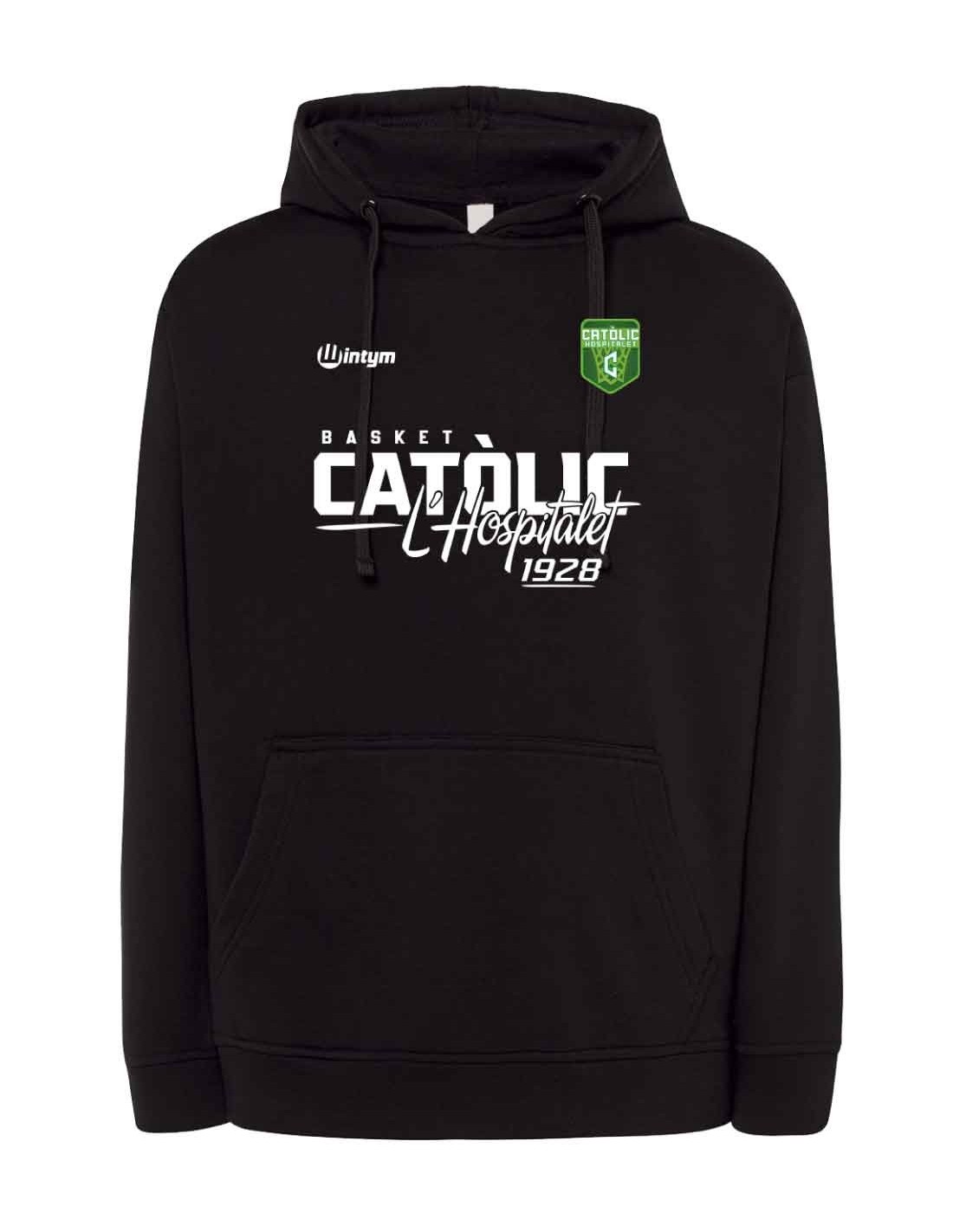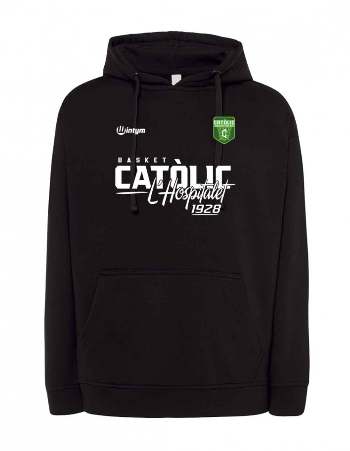 Sudadera unisex confeccionada con tejido de pelfa perchada en el interior. Tiene un bolsillo canguro en el centro. La capucha está forrada y tiene un cordón para ajustarla (excepto las tallas pequeñas para niños, que por seguridad no tienen cordón).