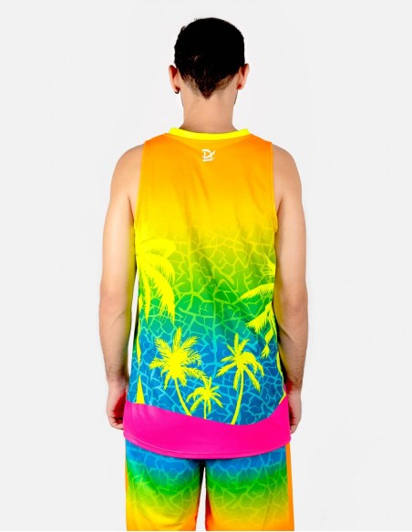 Se confecciona en Barcelona y se estampa mediante la técnica de la sublimación.