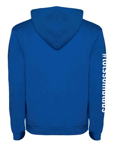 Sudadera capucha con bolsillo canguro y cordón ajustable. 50% algodón, 50% poliéster